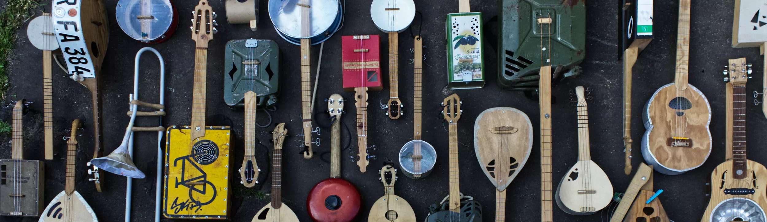 Soll das Griffbrett aus Mahagoni oder aus Ahorn sein? Mit solchen Fragen werden wir uns nicht aufhalten, denn in diesem Workshop geht es darum, Saiteninstrumente aus Sperrmüllfunden, Schrottplatzplünderungen und Kellerentrümpelungen zu bauen.